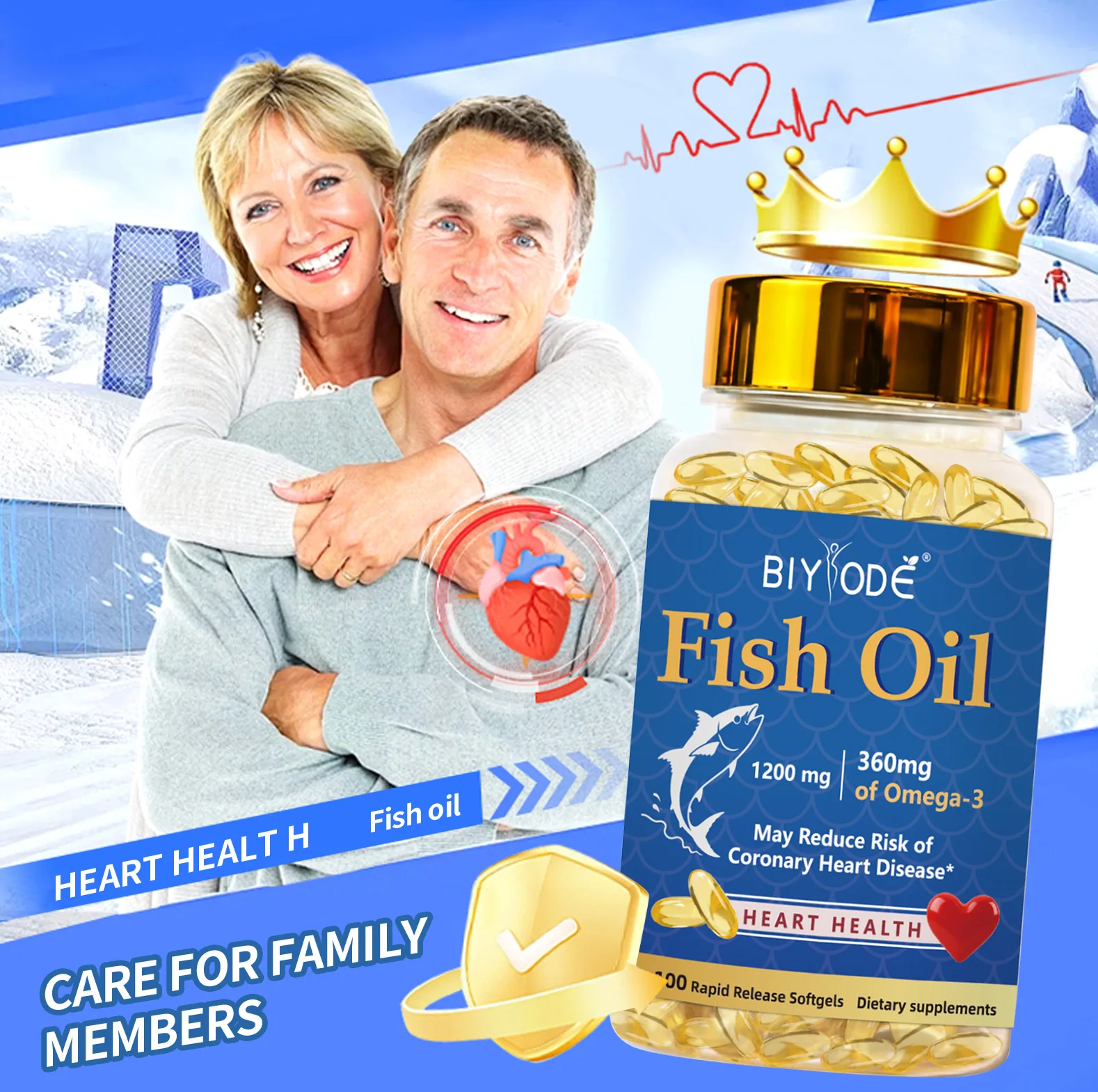 Omega 3 Fish Oil Capsules 1200mg EPA DHA Family Daily Nutritional Support Softgels