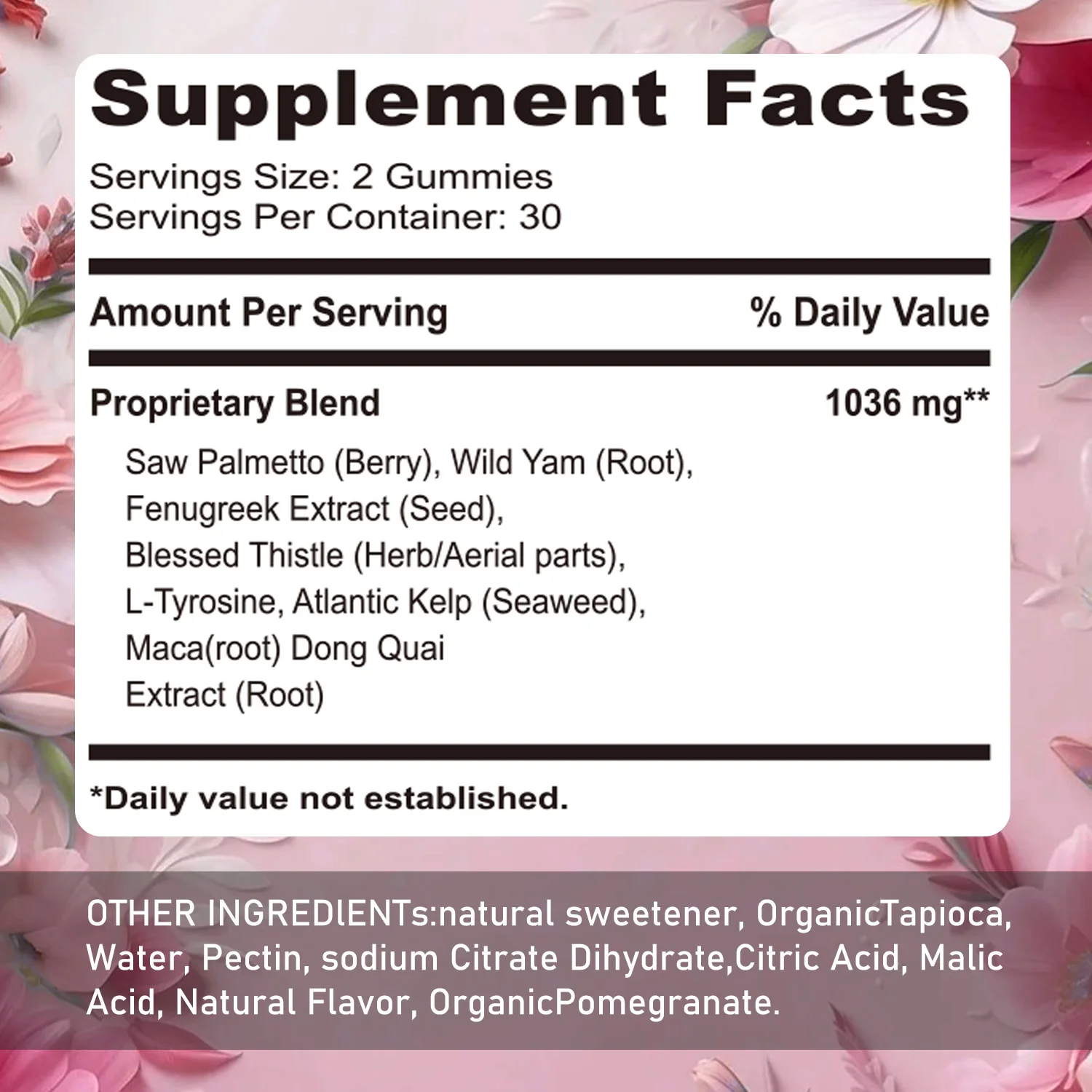 Saw Palmetto, Wild Yam, Fenugreek, Maca, Seaweed, Milk Thistle