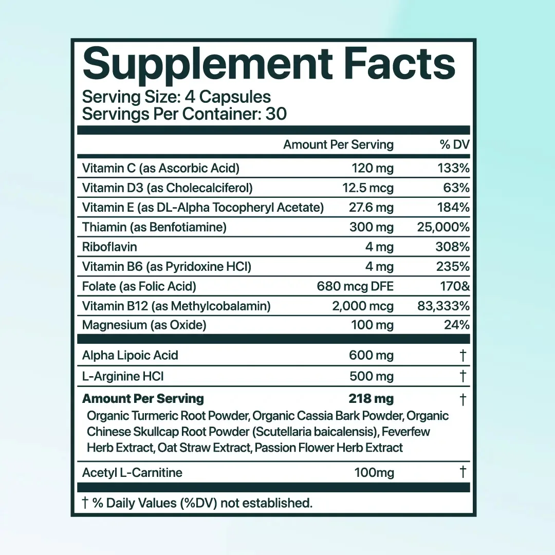 Neuropathy 18 in 1 Capsules with Alpha Lipoic Acid Benfotiamine Magnesium and B Vitamins