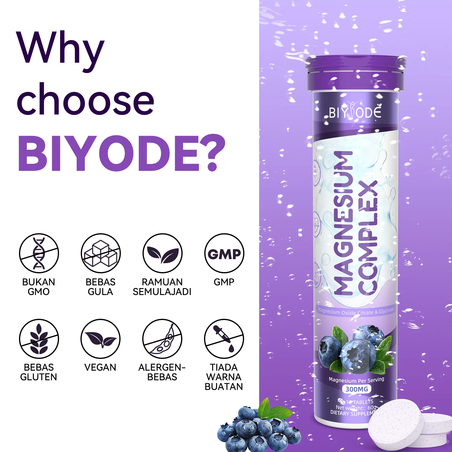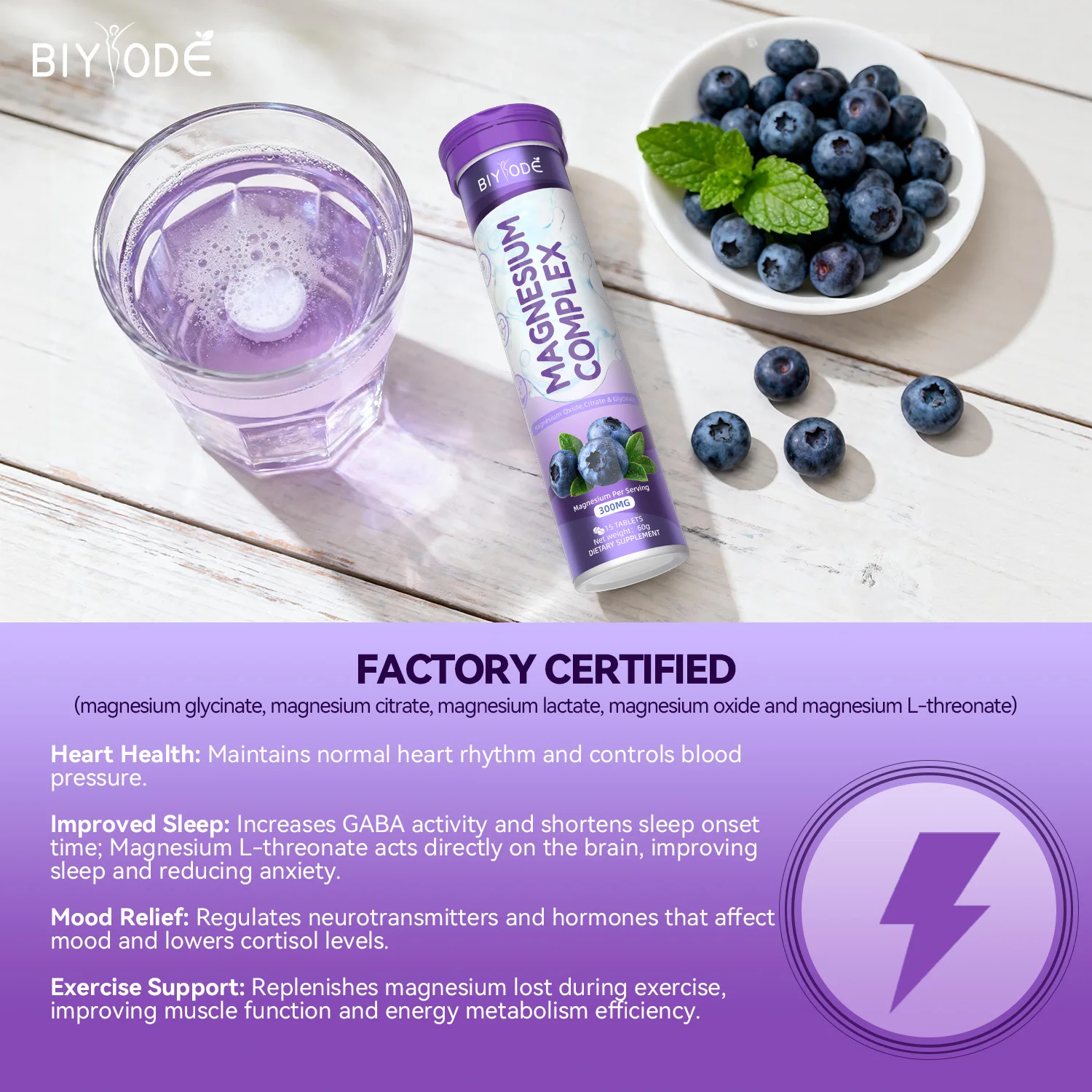 OEM ODM Factory Service BIYODE Magnesium Complex Effervescent Tablets 300mg Easy Dissolve Nutrition